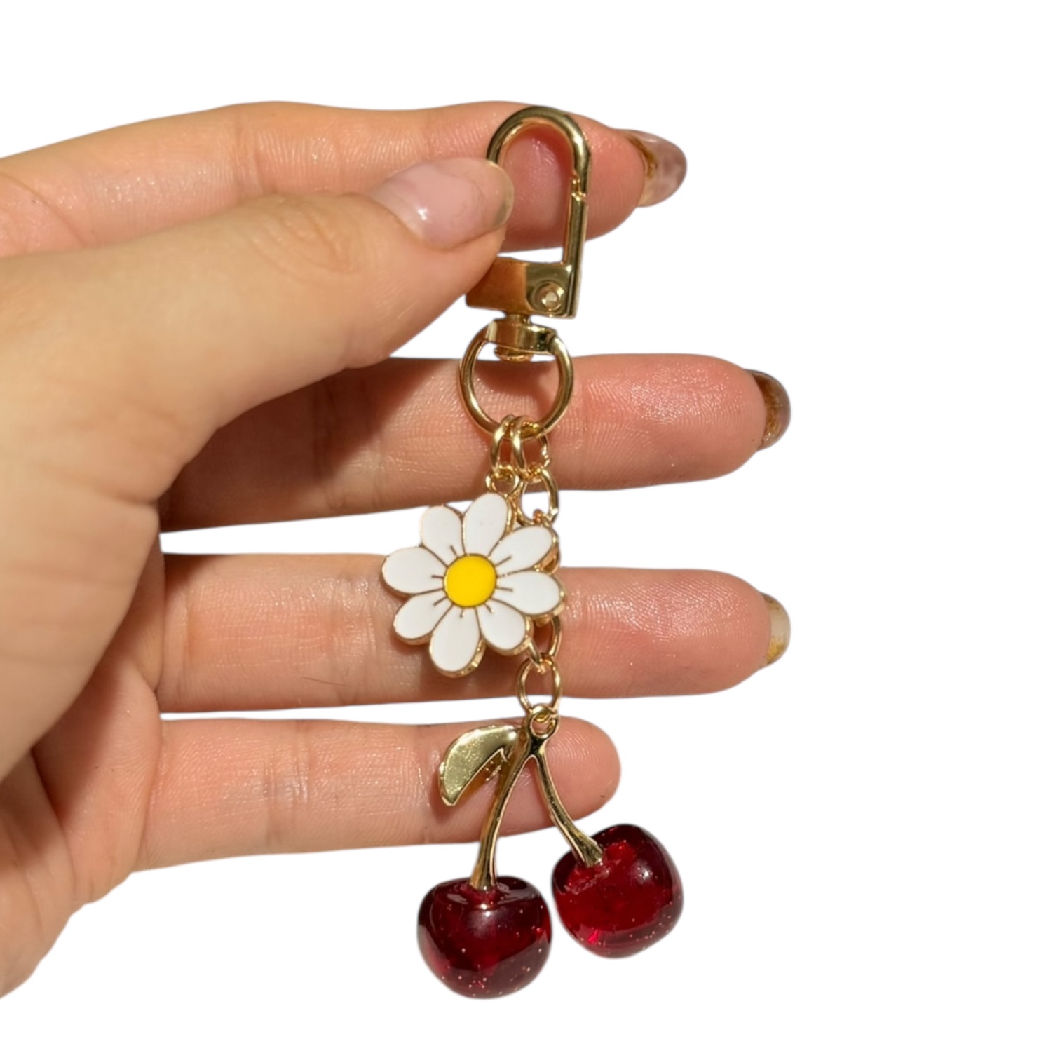 llavero de Cereza con Lazo Dorado Brillante Lindo y perfecto para Bolsos, Mochilas, Llaves de Coche e incluso accesoriazar tu termo