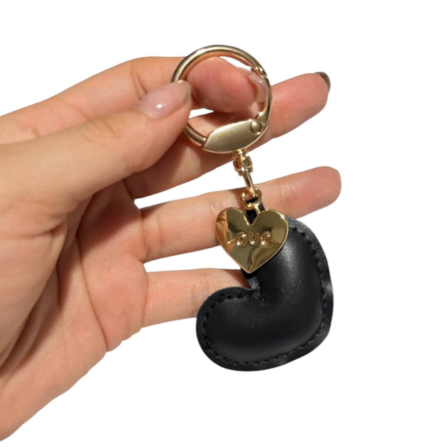 llavero corazon cuero negro