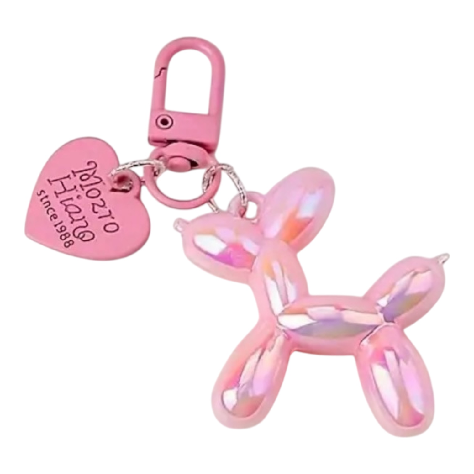Llavero de perrito corazon – rosa metalico