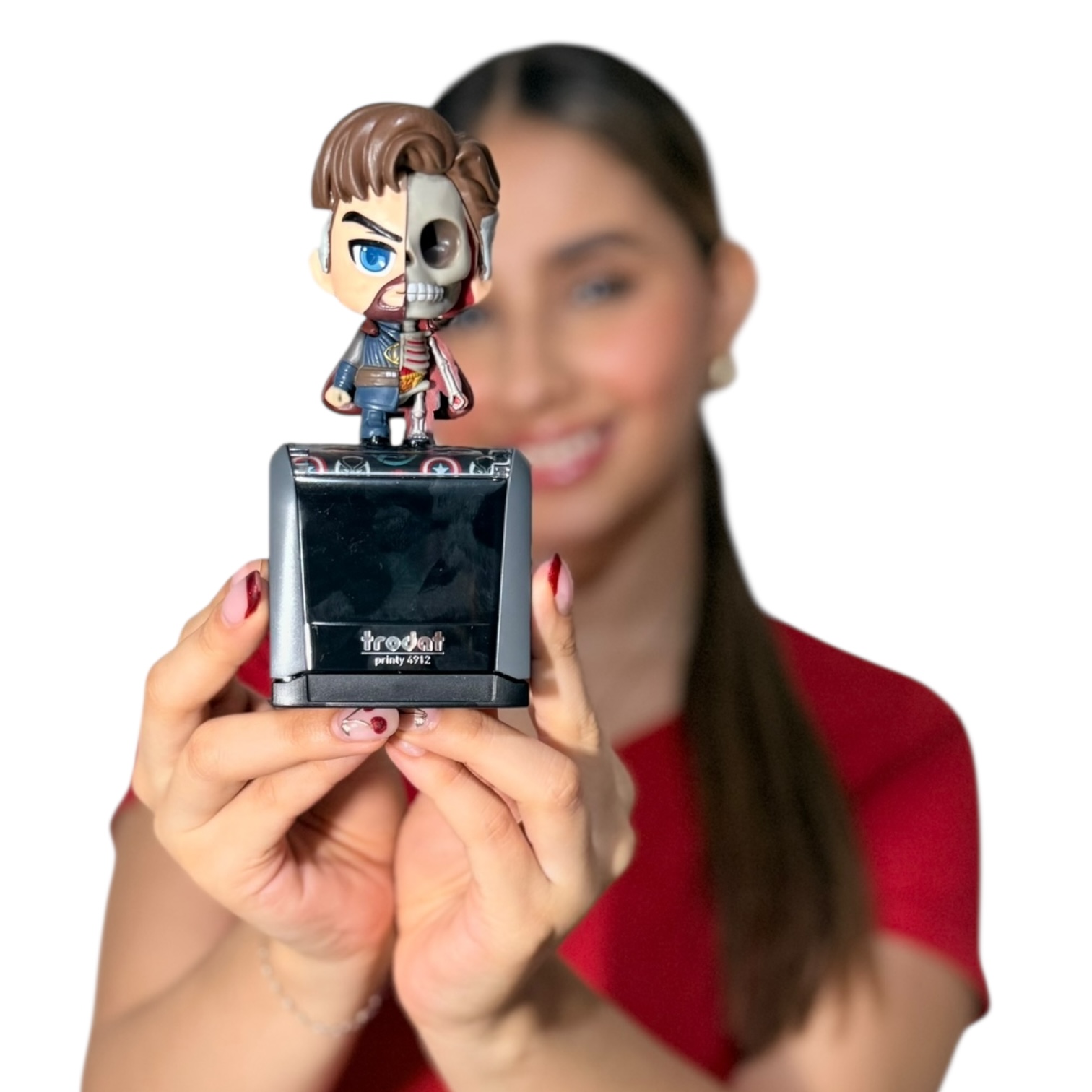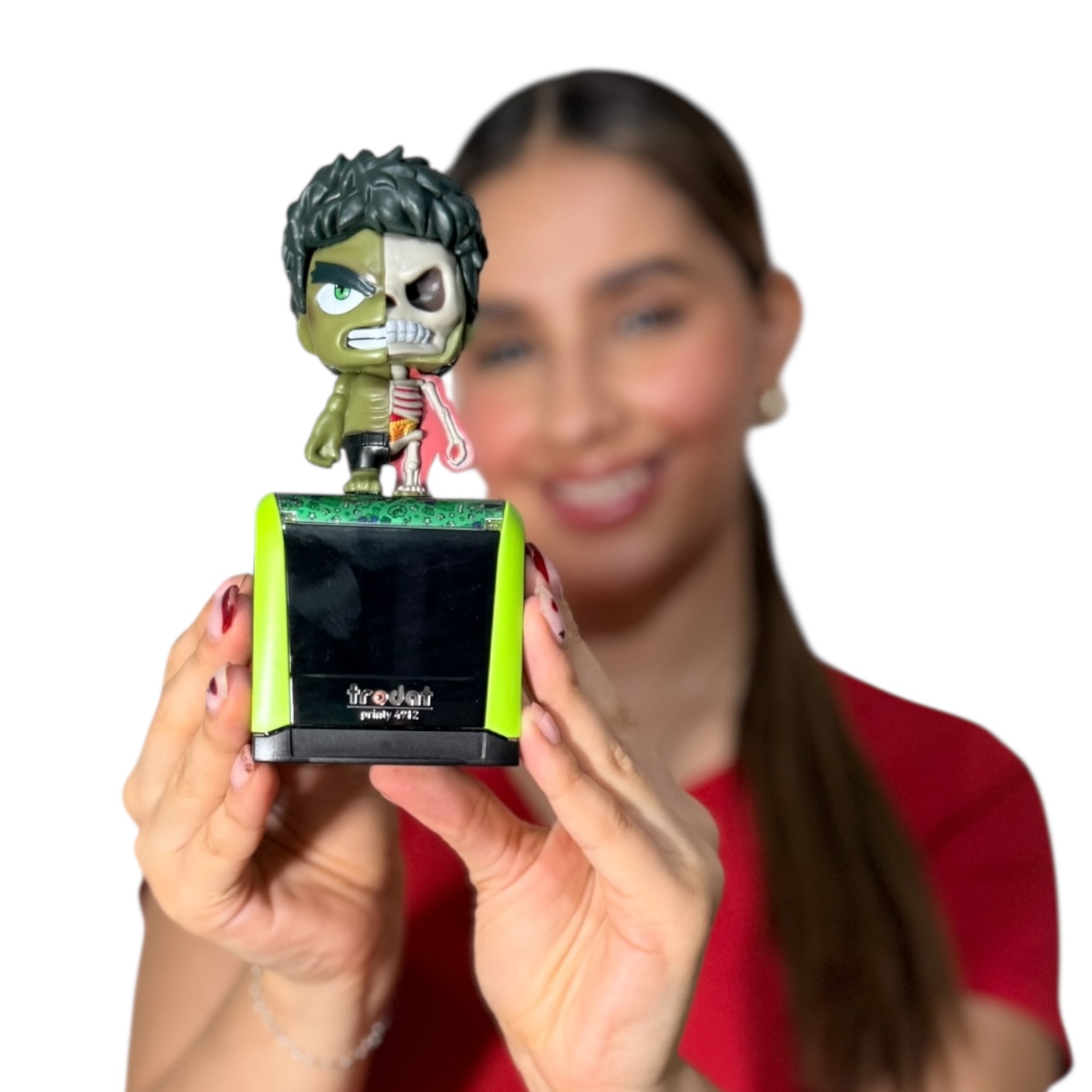 El sello personalizado está diseñado para el personal de salud que busca practicidad y estilo en su trabajo diario. Con base Trodat Printy 4912, ofrece impresiones nítidas y duraderas, perfectas para historias clínicas, recetas y documentos médicos. Su diseño ergonómico facilita su uso y transporte, mientras que la figura decorativa le da un toque único, personal y divertido sin perder profesionalismo. Ideal para médicos y profesionales de la salud que desean un sello original, funcional y personalizado.