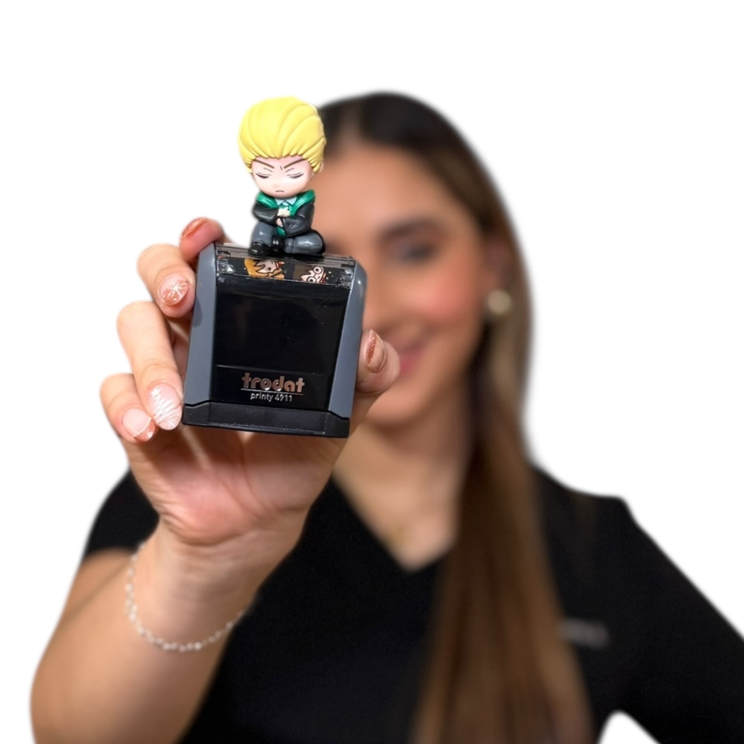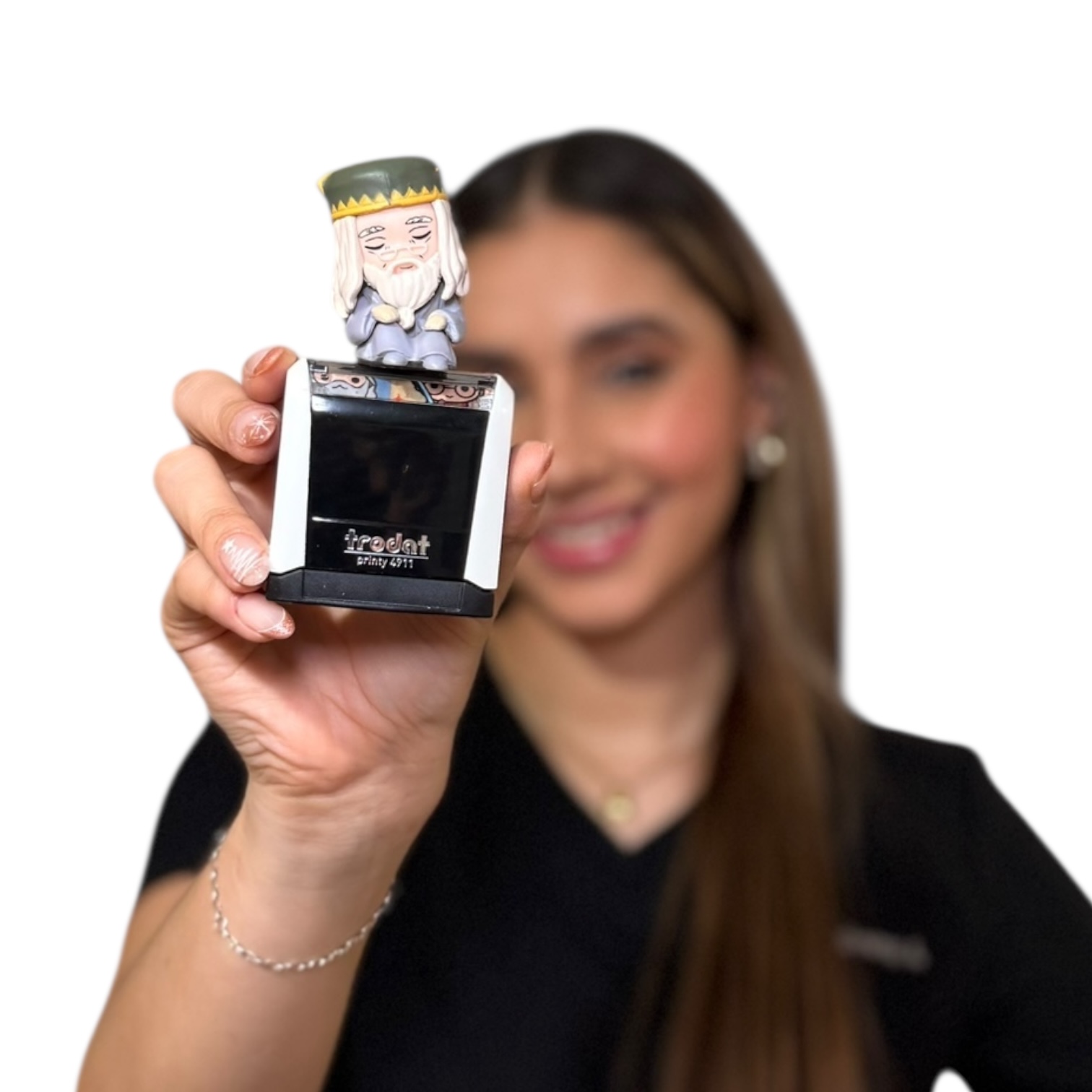 El sello personalizado está diseñado para el personal de salud que busca practicidad y estilo en su trabajo diario. Con base Trodat Printy 4911, ofrece impresiones nítidas y duraderas, perfectas para historias clínicas, recetas y documentos médicos. Su diseño ergonómico facilita su uso y transporte, mientras que la figura decorativa le da un toque único, personal y divertido sin perder profesionalismo. Ideal para médicos y profesionales de la salud que desean un sello original, funcional y personalizado.
