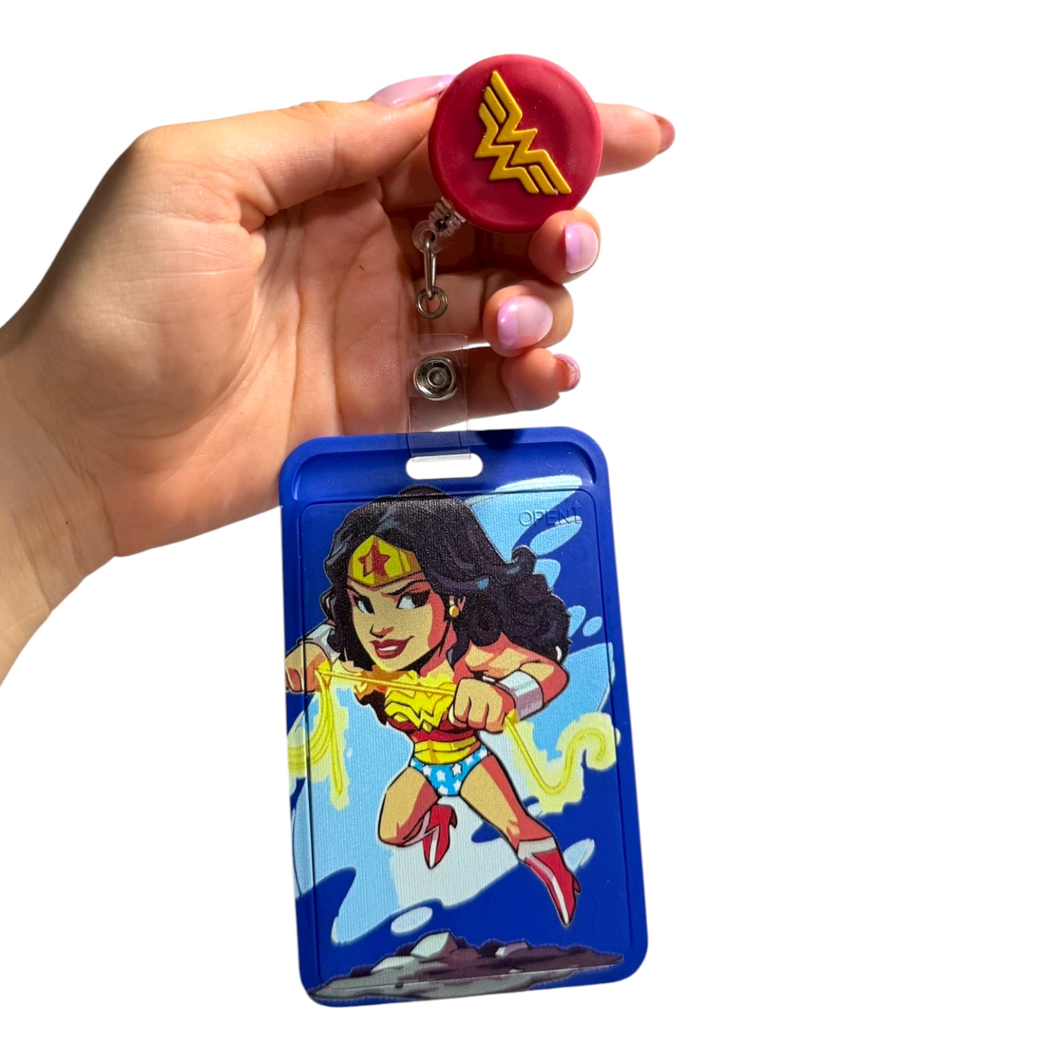 portacarnet en yoyo retractil, en material resistente y ligero, ideal para llevar tu carnet, tarjeta o incluso llaves siempre contigo,comodo y con su sistema extensible permite sacar y guardar tu carnet sin necesidad e quitarlo, manteniendolos seguros y a la mano, con clip trasero para sujetarlo facilmente a la bata, cinturon, bolsillo, etc… ademas con diseño unico y diferente para lucirlo.